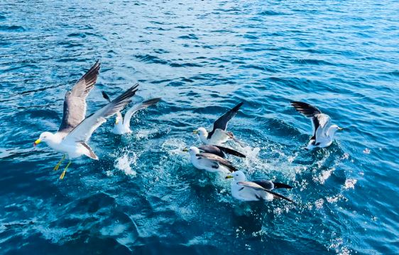 ▲ 伊根湾游览船:约25分钟的航程可以让你从海面欣赏成排的舟屋全景,船上通常还提供喂食海鸥的互动体验。