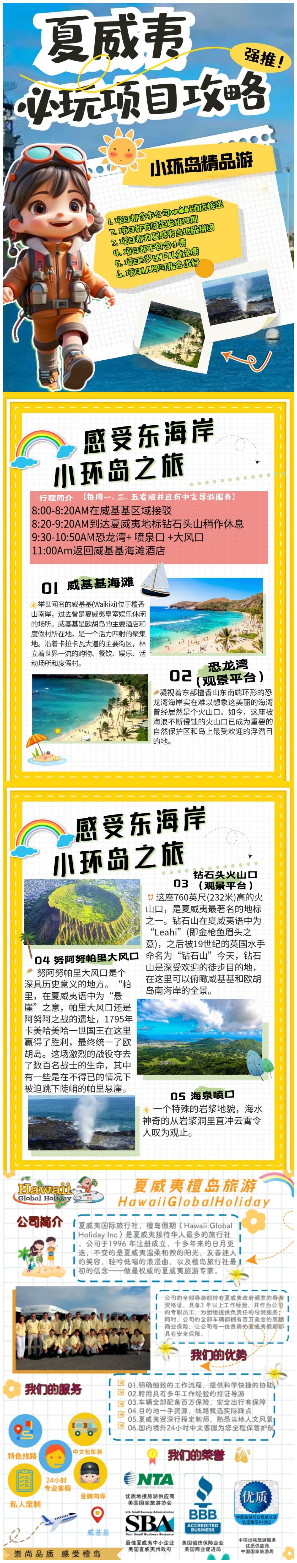 美国夏威夷东岸小环岛游 【专业中文导游】【参观知名的景点钻石头山、恐龙湾、喷水口、大风口等!】