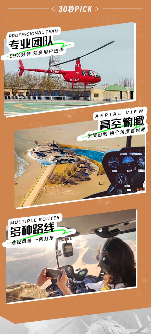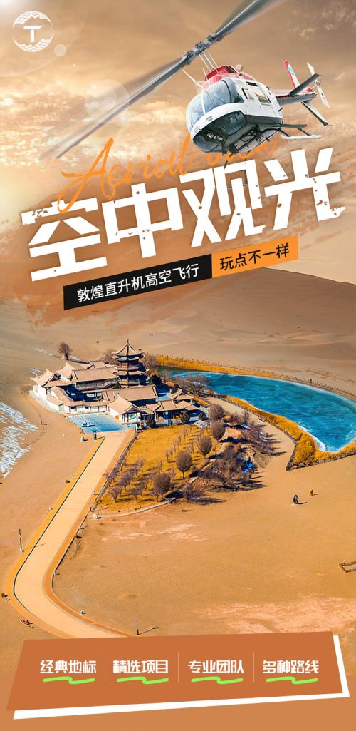 中国甘肃敦煌鸣沙山月牙泉一日游【直升机飞行体验+美丽风光】【经验丰富老机长,价格透明,服务用心贴心放心】