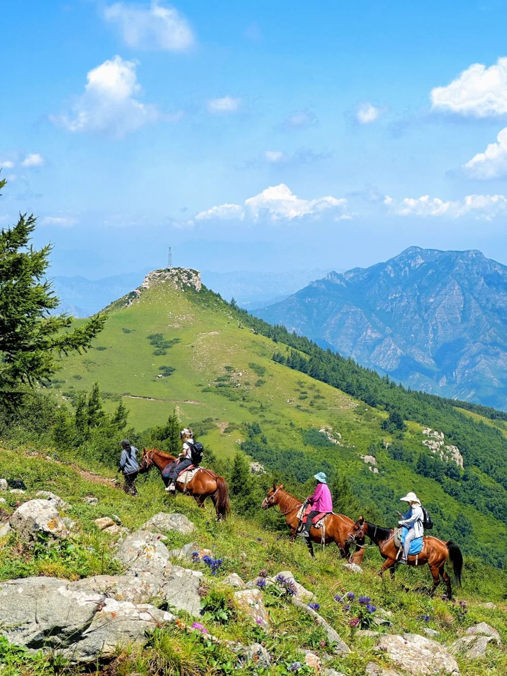 ▲ -10:00|左右到达登山口,在领队带领下开始徒步穿越。我们跟随领队一路领略连绵不断的群山峻岭,一望无际的高山草甸,茂密繁盛的森林野花,我们一路赏景拍照,感受这北京屋顶山脊的美,全程对队员体力要求较高,往返需耗时6小时左右,全程无补几,需大家自备足量食物和水,中午择地野餐。备选【张家坊或者江水河上下山】 - 16:30|集合返程。 - 20:00|到达出发地,爬山活动结束。 *以上行程时间仅供参考,户外活动所涉地可能因为天气交通、地质灾害、防火防洪或资源保护等因素存在不确定性,如有临时管控领队
