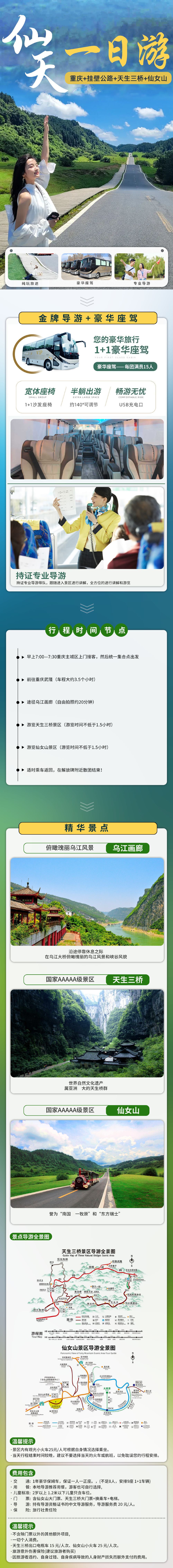 【全新升级15人团·保姆车·含导游】天生三桥+仙女山一日游【【至尊体验】1年内17座航空保姆车,1+1格局超大空间,能伸腿能躺能睡,告别疲惫的武隆一日游!】