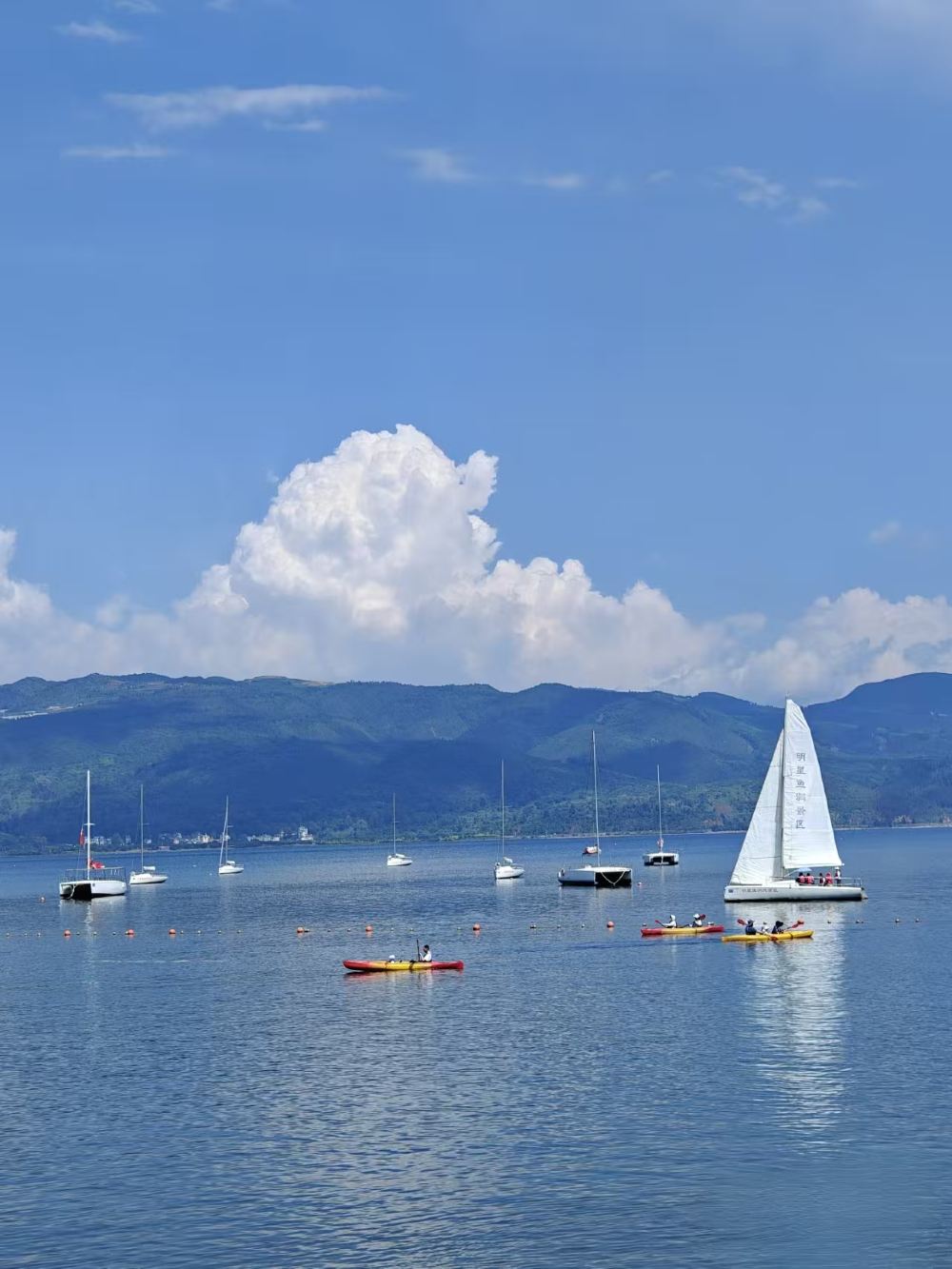 ▲ 渔舟唱晚, 抚仙碧波 ,畅游蓝色抚仙湖;