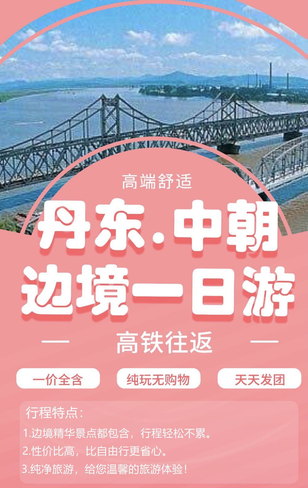 丹东鸭绿江游船+中朝边境+断桥+河口景区一日活动【高铁往返】【高铁往返、更安全、更高端、更舒适、更省心;】