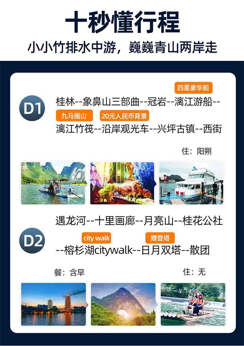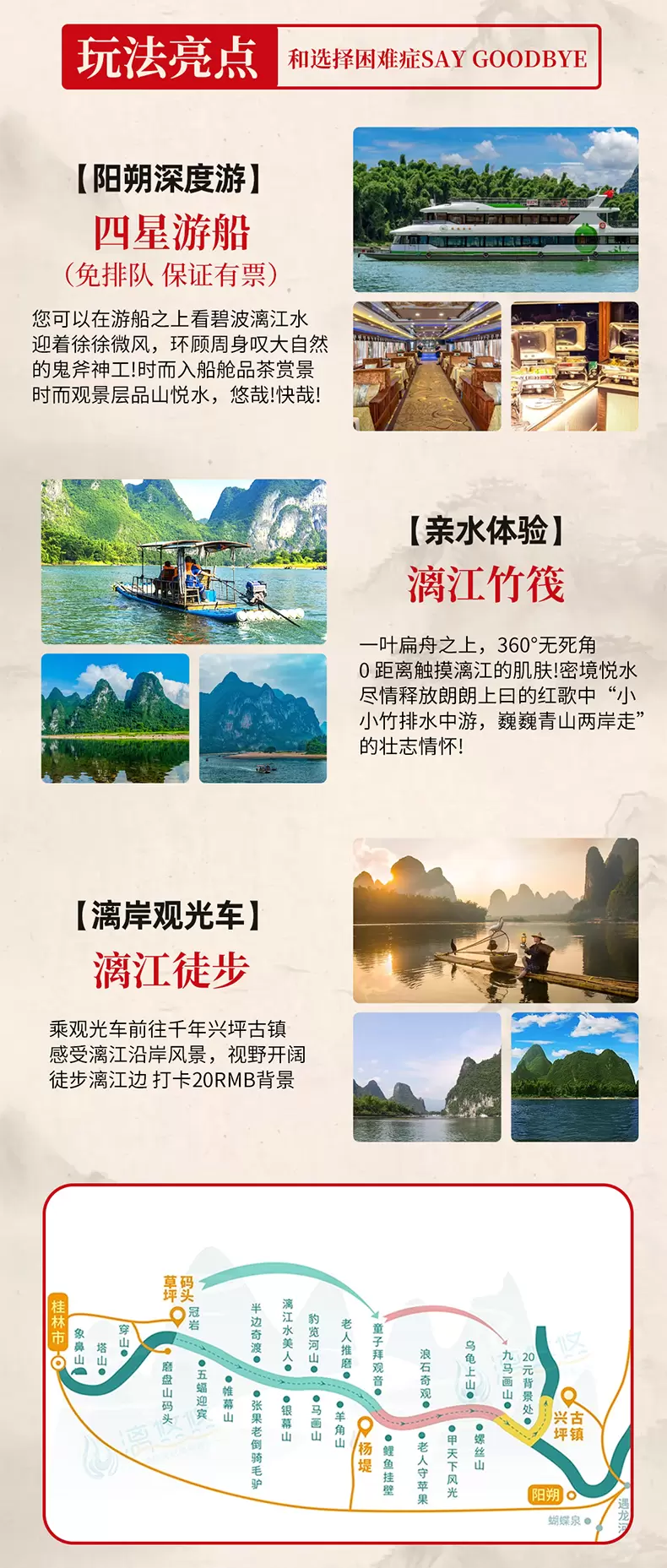 桂林阳朔+漓江精华游+兴坪古镇+象鼻山景区二日游【佳游纯玩·漓江三游:四星船+竹筏|可选遇龙竹筏~20人团】