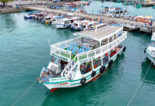 游船从汤姆岛出发,抵达后即可下船前往水上逗趣船乐园(这里有超过 20 种世界国际水上运动主题可供选择)。
