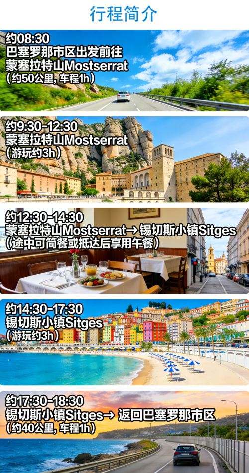 【私家小团】巴塞罗那蒙塞拉特山+锡切斯滨海小镇一日游包车【[私家小团]独立成团,品质纯玩,市区酒店接送出行更舒适】