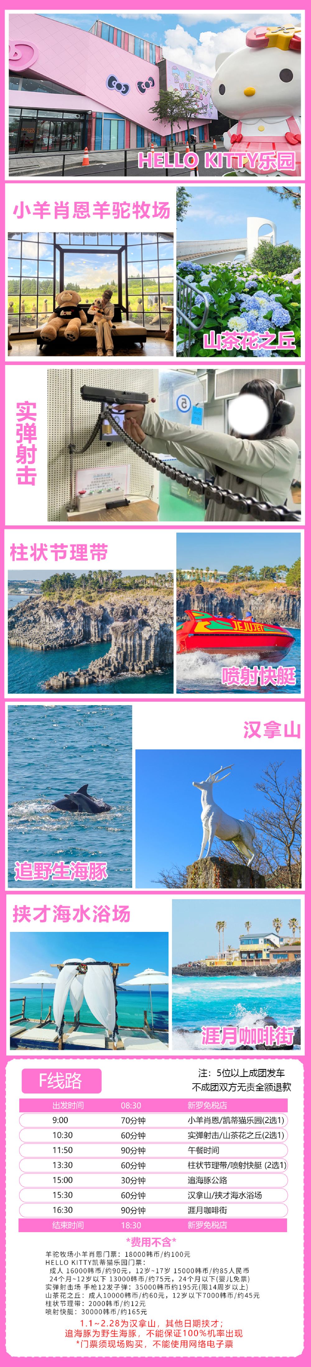 济州岛西南线一日游/凯蒂猫乐园/实弹射击/柱状/喷射快艇【济州岛旅游纯玩一日游,中韩双语导游】