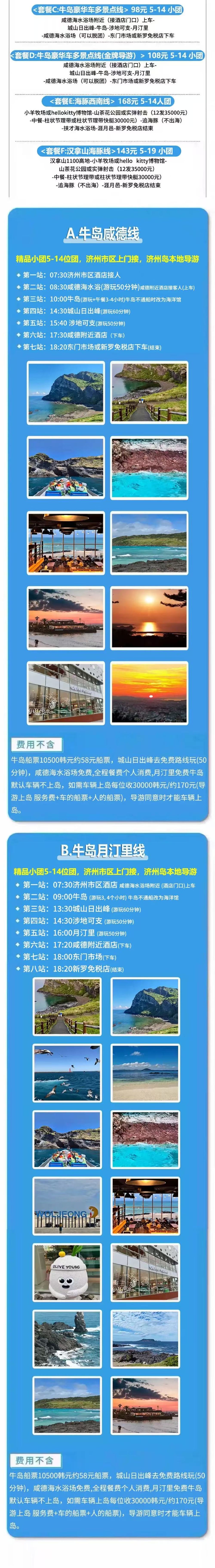 韩国济州市牛岛一日游拼车包车济州岛牛岛一日游【打卡东线五大网红景点1.牛岛2.城山3.涉地4.月汀里5咸德海水浴场】
