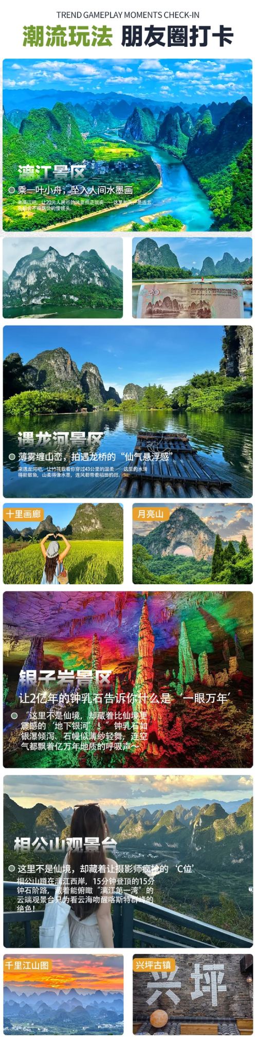 桂林出发+漓江竹筏(杨堤-九马画山或兴坪-九马画山段)+兴坪古镇+20元背景+千里江山图+相公山