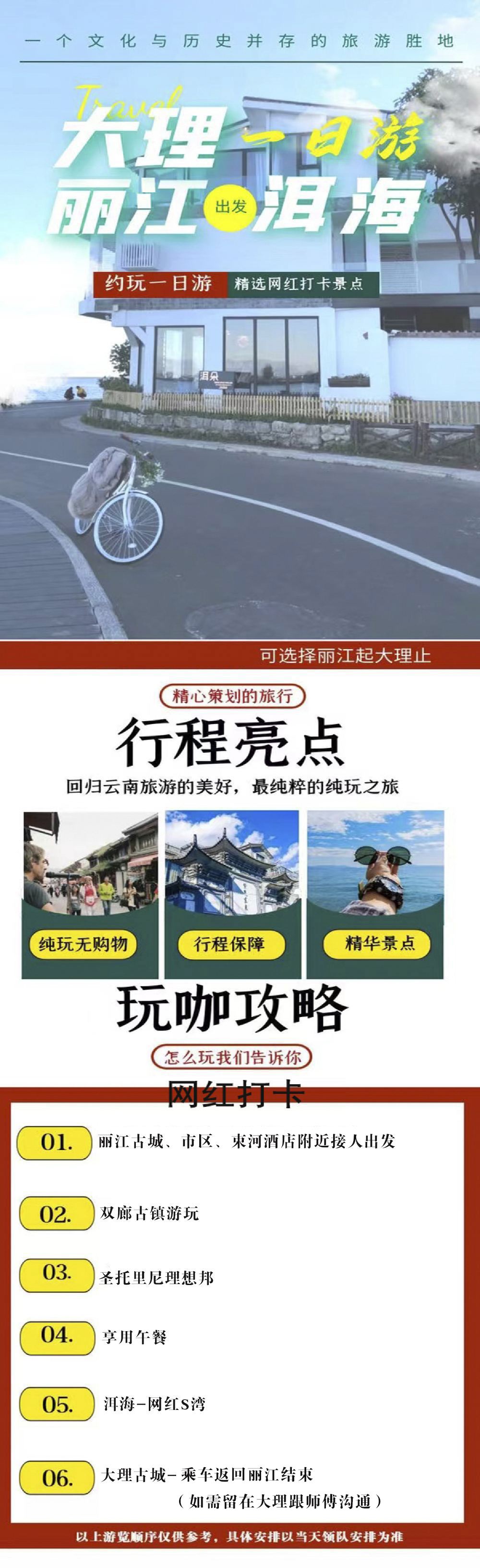 丽江出发 大理环洱海一日游【磻溪村S弯+双廊+大理古城】【本地老司机带队,丽江出发,玩转大理,省心省力 可自行留在大理 适合时间有限人群】