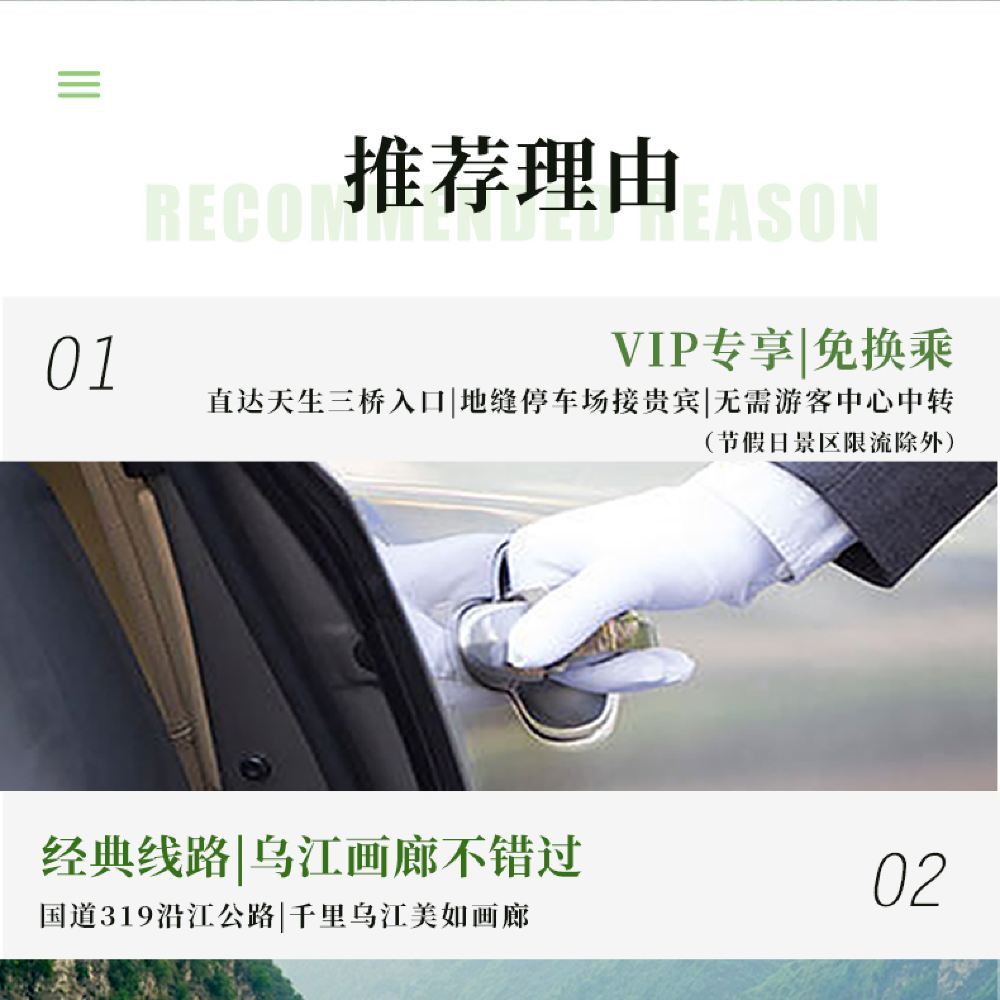 接完客人前往【乌江画廊观景平台】打卡,大约游览时间为30分钟左右,之后到达武隆,吃午饭(午饭自理),午饭之后游览【仙女山国家森林公园】【天生三桥景区】,游览结束之后,返回重庆,统一在解放碑商圈散团。