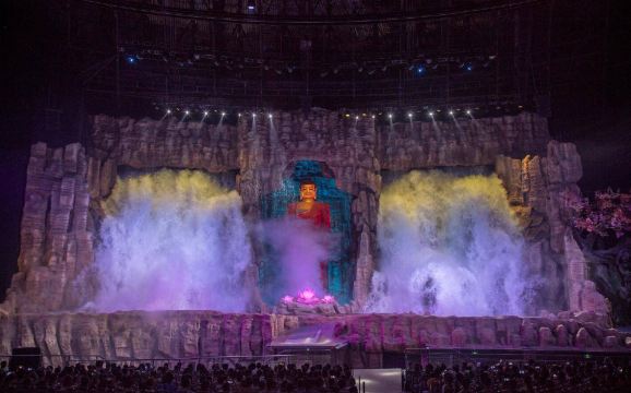 ▲ · 惊人的舞台效果: 有真狼群跑过舞台,有真骆驼出演,有高达十几米的巨型佛塔从舞台中央升起,有瀑布、雪崩等壮观场景。 · 故事性强: 以普通驼工的视角切入,情节跌宕起伏,容易理解和共情。 · 推荐语: “这场秀完美融合了科技与艺术,节奏紧张刺激,尤其受家庭游客和孩子们的喜爱,保证让你惊呼连连。”