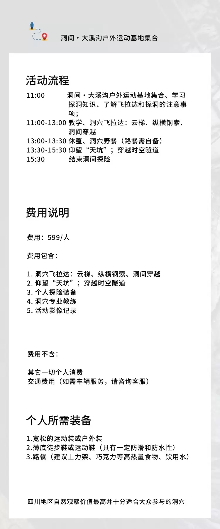 四川乐山洞间大溪沟户外运动基地【云端下午茶/垂直攀岩、穿越地心之光/带娃化身“地心探险家”】