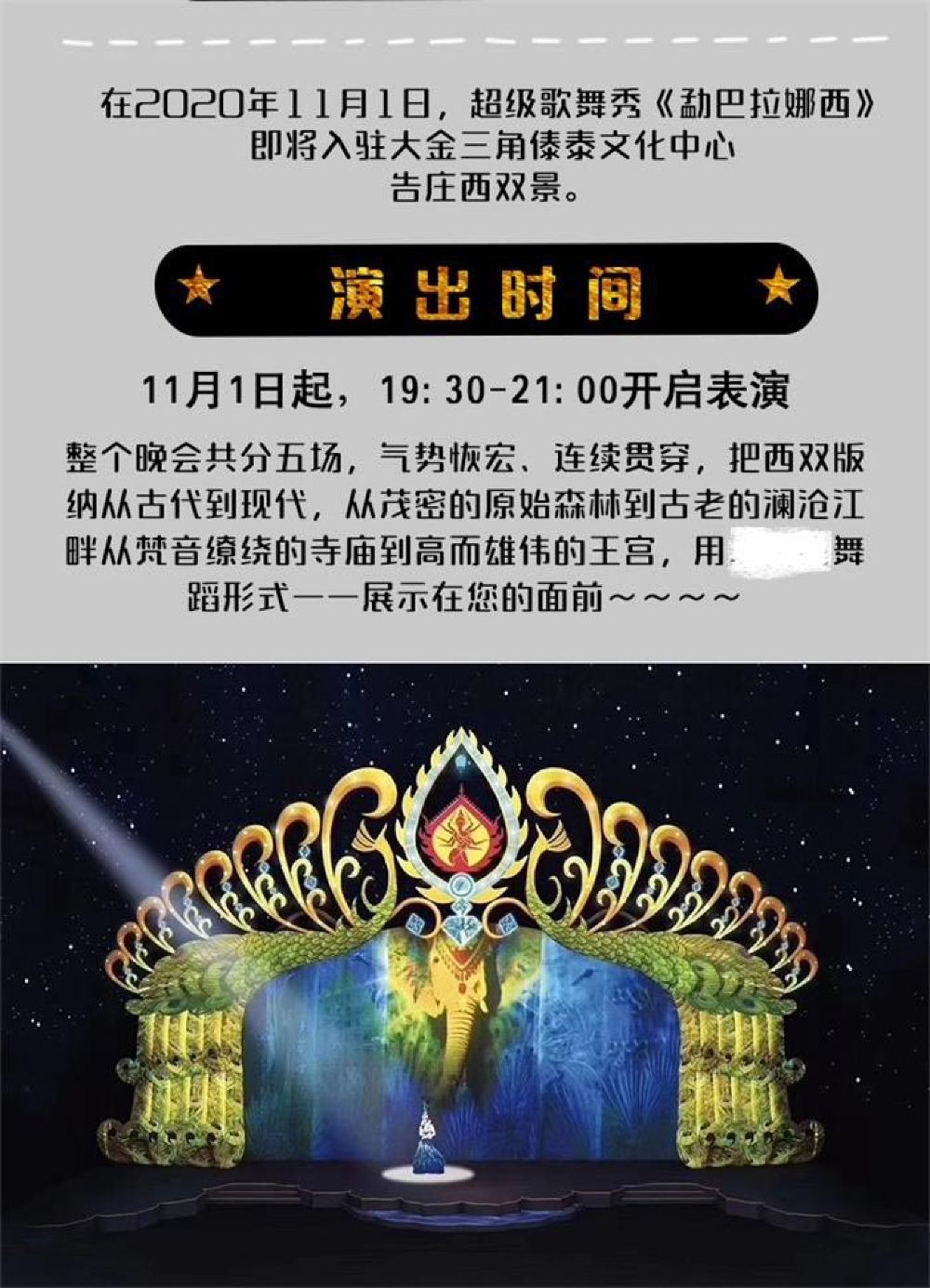 中国云南西双版纳金孔雀之夜·勐巴拉娜西一日游-自驾车必选【[景区看点]一场民族文化视觉盛宴,一台以西双版纳民族风情为题材的大型旅游歌舞晚会】