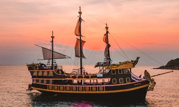 泰国芭堤雅格兰岛+萨岛帆船出海一日游 黑珍珠号DJ派对+海钓【2025全新复古海盗风帆船,豪华三层设计,黑金外观+复古内饰,超高颜值;】