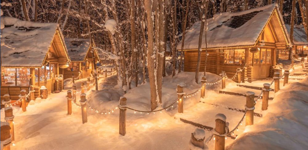 ▲ 森林精灵露台/拓真馆丨 这里是由15栋手工木屋组成的童话村落,错落隐藏在白雪覆盖的森林中。每间木屋都是特色手工艺品店,冬季灯光亮起时宛如《冰雪奇缘》中的场景,是拍摄梦幻雪景的地点。 (平日前往森林精灵露台,红日子前往拓真馆,如遇交通管制不去精灵露台。)