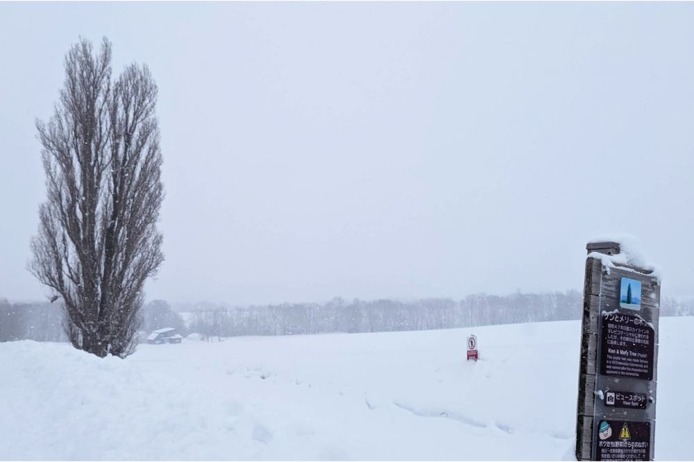 ▲ 肯和玛丽之树 这棵孤独矗立在雪原上的白杨树,因经典广告而成为北海道标志性景观,冬季披上银装后更显诗意,是出名的摄影打卡点。