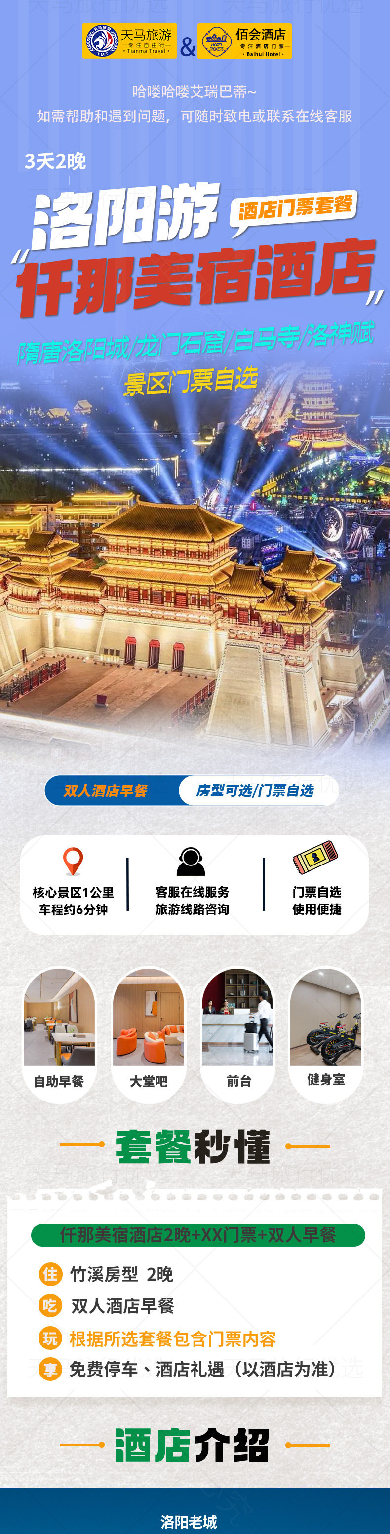 【连住2晚】洛阳仟那美宿酒店3天2晚隋唐洛阳城应天门/天堂明堂/寻迹洛神赋/龙门石窟/白马寺-门票自选+早餐