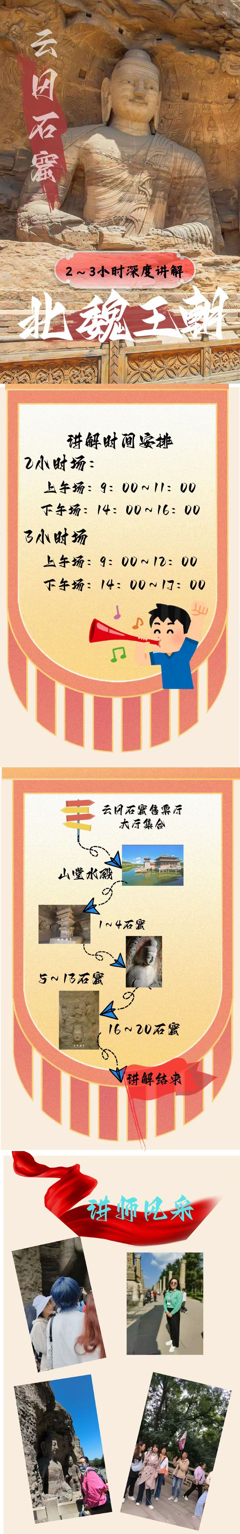大同云冈石窟半日游【北朝持证导游讲解2H~3H拼团15人】【本产品非常适合人数少的自由行客人,想花时间深度了解云冈石窟的宝子们】