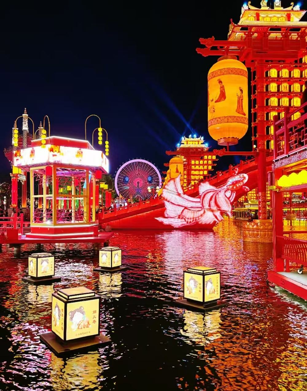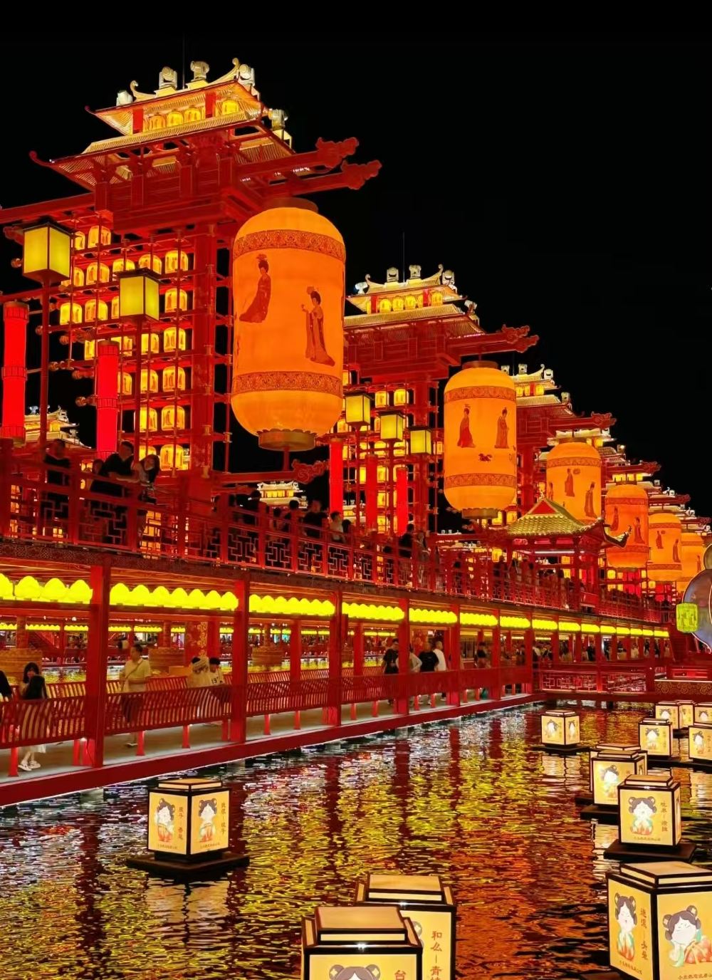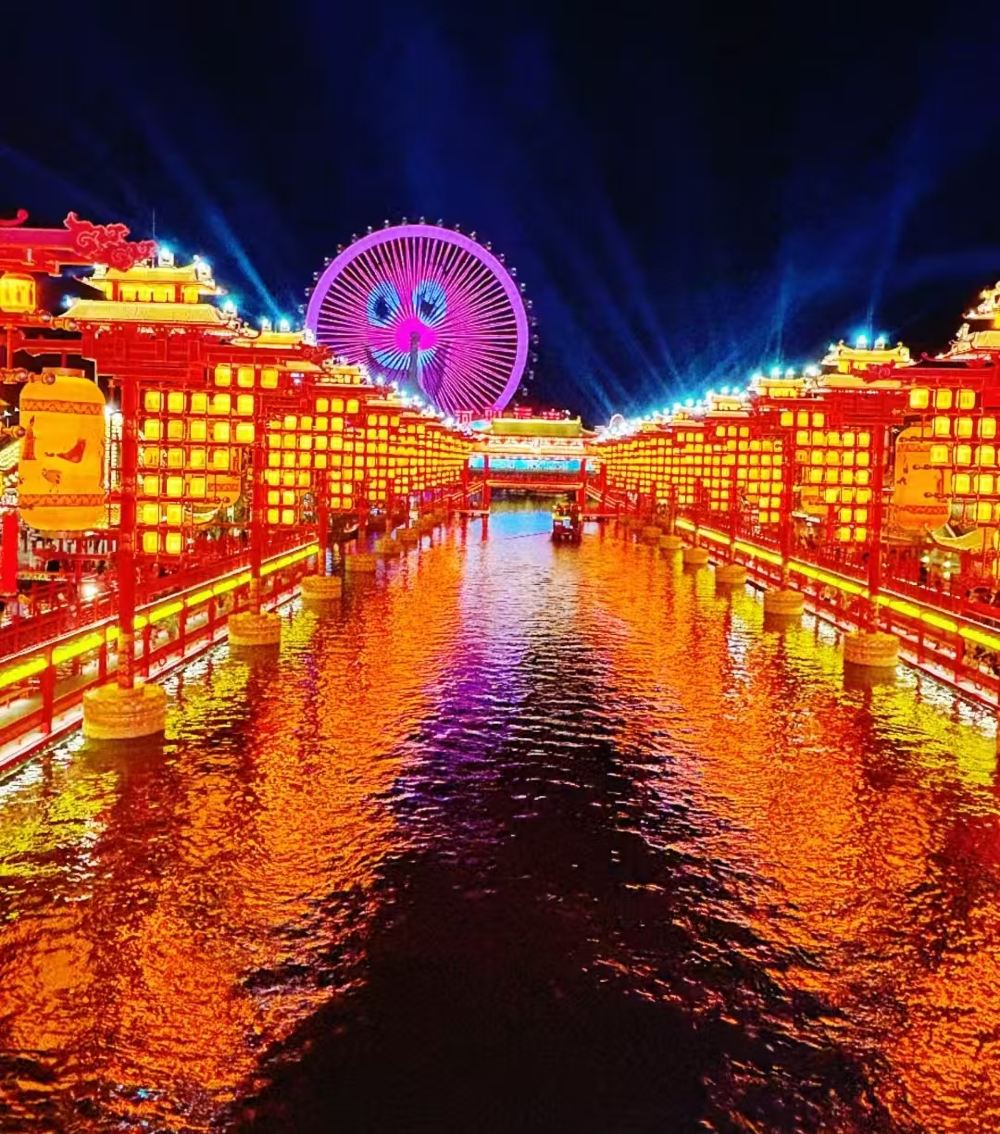 其前身为运河唐人街,是一片仿古建筑群落,沿河绵延一公里左右。 整个园区风格还原了大唐盛世盛景,有真人歌舞表演,杂技表演,游船表演等,还有一个很大的水上集市。