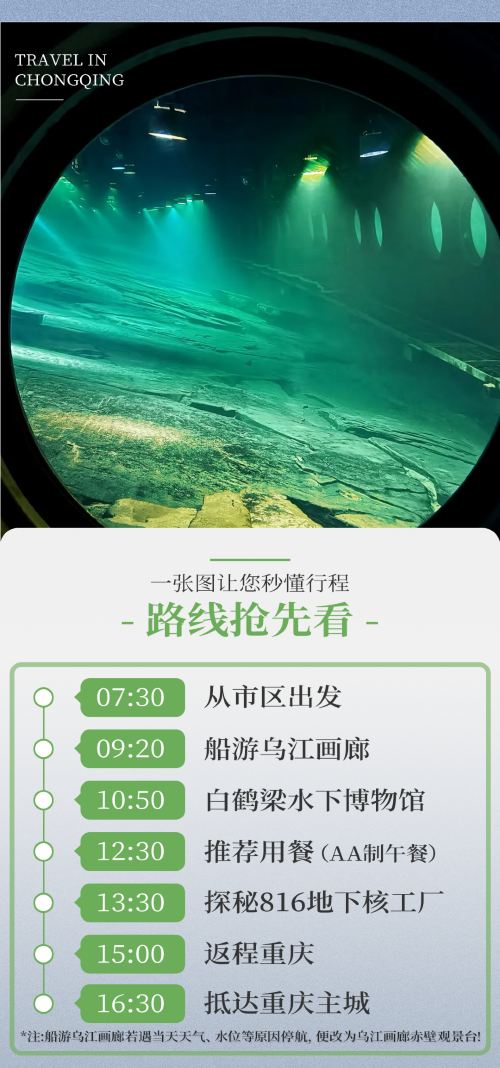 【船游乌江+白鹤梁博物馆+816地下核工程】2-8人一日游【6人轻松高质量团】
