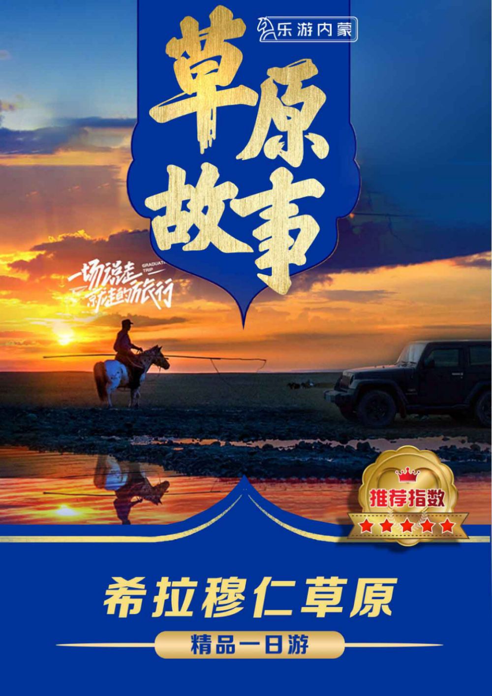 早乘车赴希拉穆仁草原,途径武川县一路向北,横穿阴山山脉,饱览阴山山脉的壮阔及帝王之乡武川县的英姿,抵达草原后,接受蒙古族迎宾仪式---敬献下马酒!体会云淡天地好景象!在辽阔的草原上,奔驰的骏马等待着您的驰骋。午餐不含,下午自由活动,乘车返回呼和浩特参观顺利结束行程。