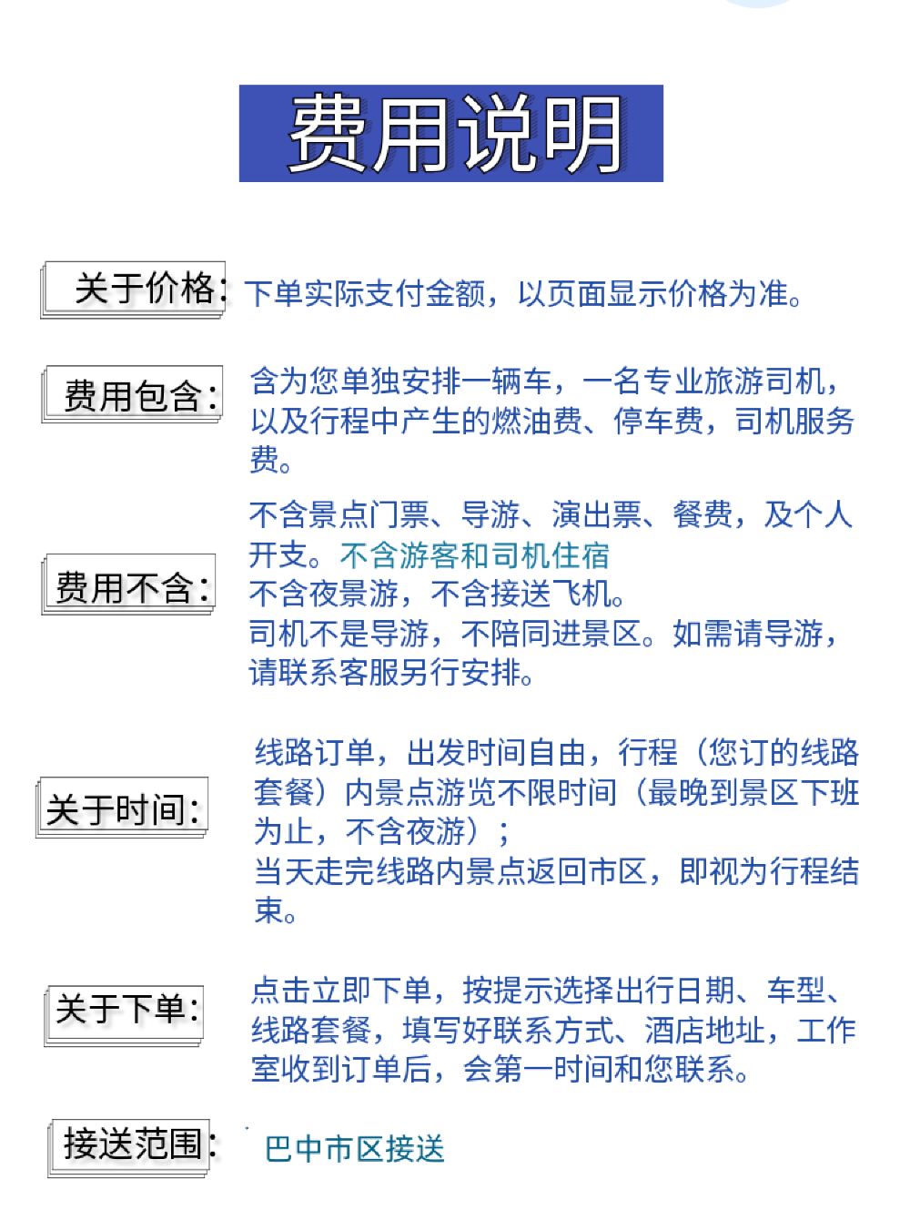 包车独立发车,按照人数选择车型,价格指的是一辆车的价格,独立包车不拼团