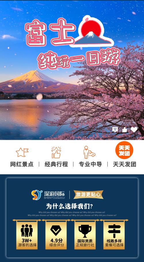 日本东京富士山盛景一日游【9人精品团|上门接送|中文导游】【[一天打卡6大热门景点]山中湖&日川时计店&罗森便利店&金鸟居&大石公园&网红公园】