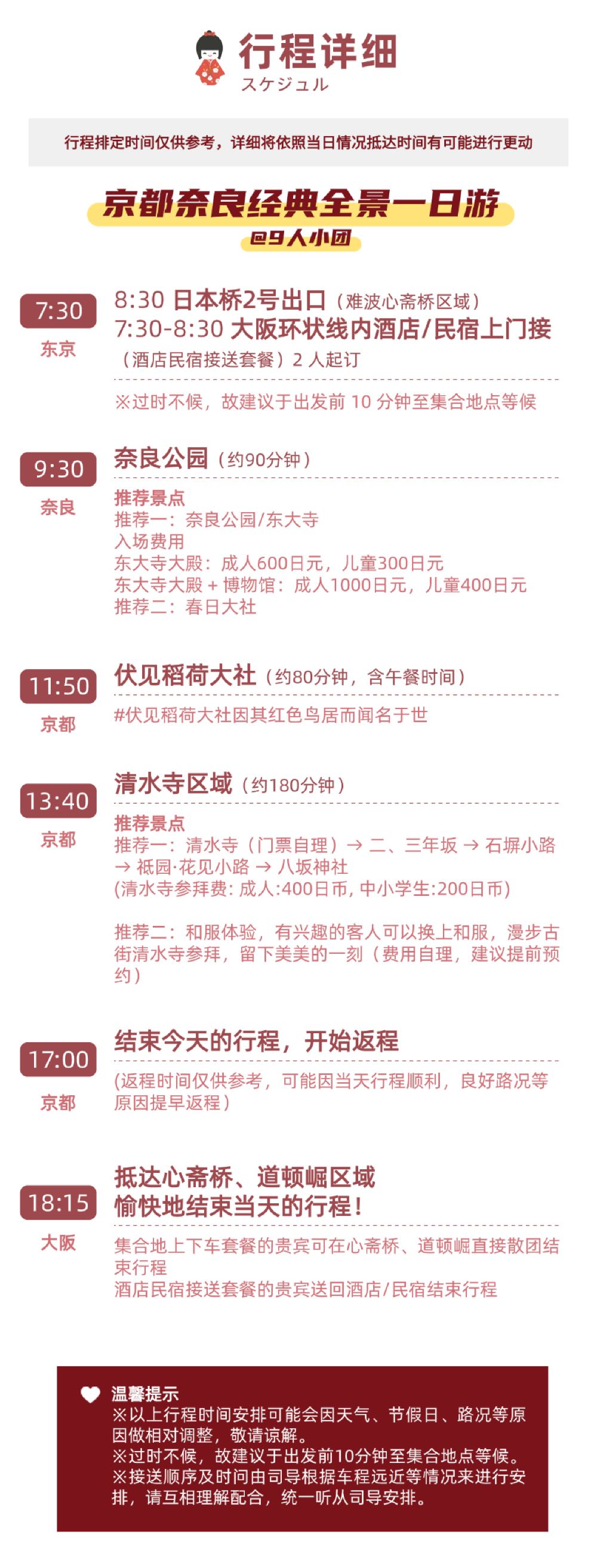 【遇见萌鹿】9人团丨京都奈良清水寺一日游【[精致小团]VIP小团给您舒适的体验、拒绝近50人的大巴车散拼团】