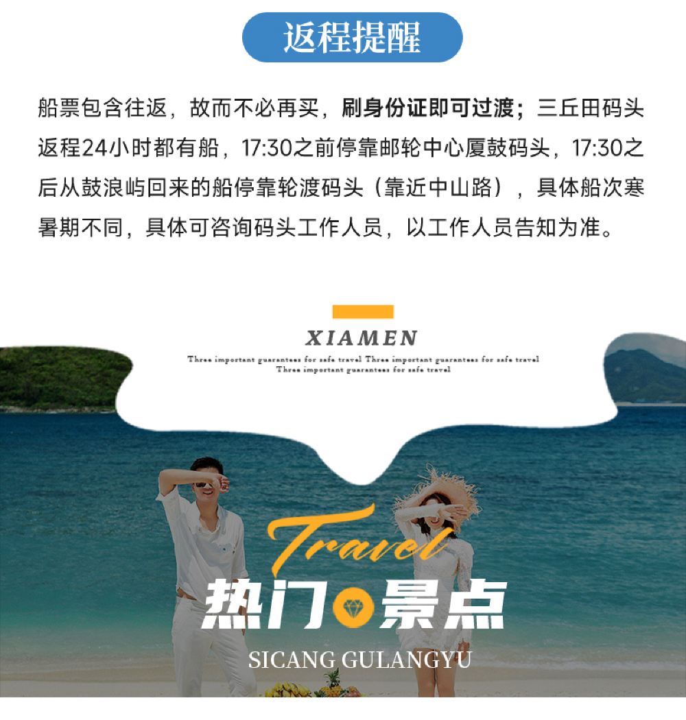 【温馨提示】国庆期间发鼓浪屿+南普陀寺一日游,具体行程以当天出行为准;船票根据当天的情况出票,不指定班次,具体时间导游通知为准