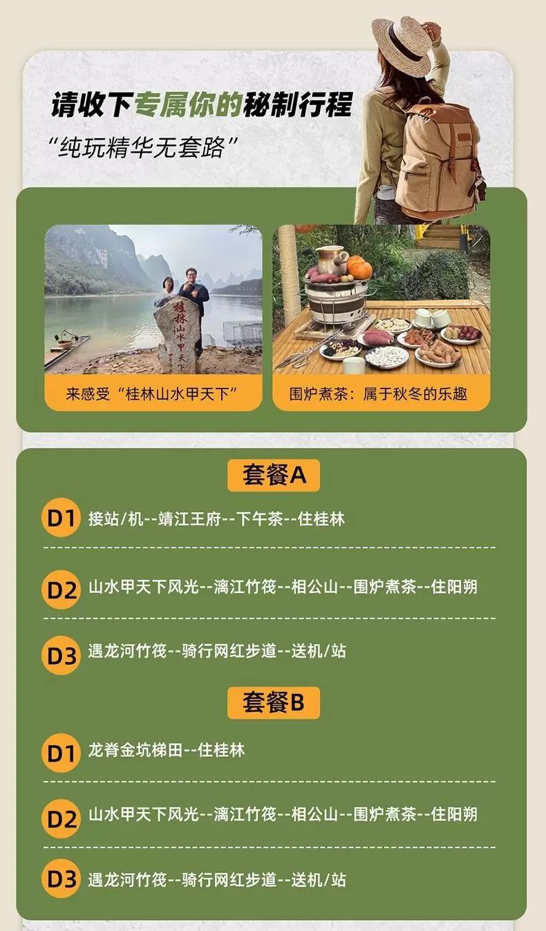 桂林阳朔三日游【佳游纯玩~精品私家团|相公山+遇龙河竹筏+漓江竹筏|赠富里桥旅拍+河畔下午茶/围炉煮茶