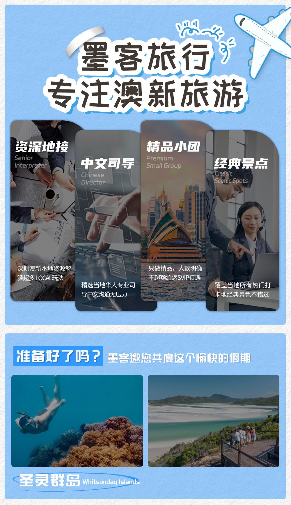 - 参观包括圣灵群岛北端和南端在内的景点