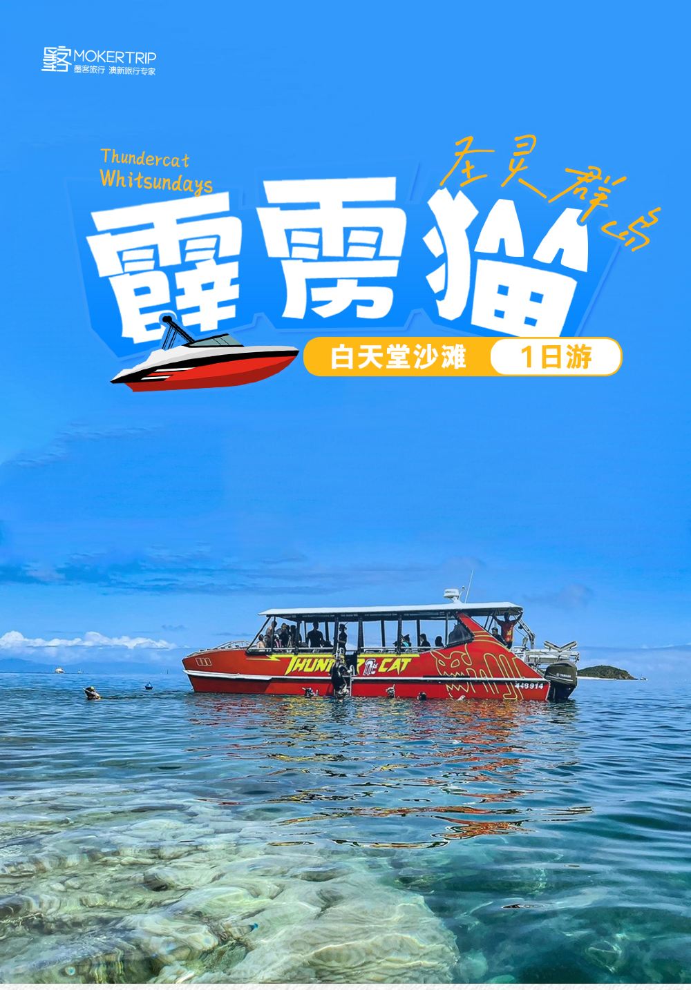 圣灵群岛白天堂雷霆猫/霹雳猫号【希尔湾观景台丨午餐丨浮潜】【[特色体验]一天内提供环绕圣灵群岛的令人振奋的旅程】