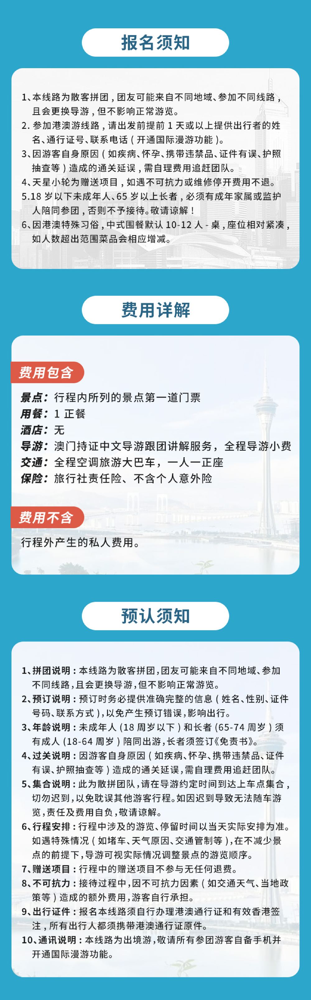 澳门高品质一日游/自营路线/天天发【高端纯玩 优质商家】【【商家力推】万人销量、千人好评、专业的服务、商家力推优质路线。】