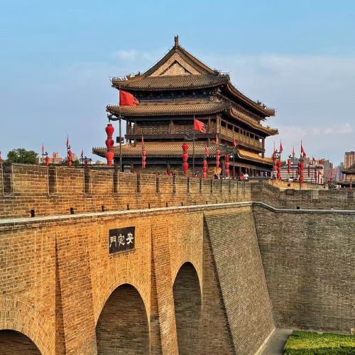 ▲ 西安城墙景区,是以西安古城墙为主题,集护城河、环城林带(包括城河外沿)、顺城路四位一体的环城风景区。建于明洪武七年到十一年(1374—1378年),是在唐代长安城皇城和元代奉元城基础上扩建而成。 -城墙轮廓呈封闭长方形。总周长约13.7公里,是保存完整的中国古代城垣建筑。近年来,西安城墙经过多次修缮和提升,已成为人文西安、古都西安的重要品牌和西安通往世界的一张特色名片。