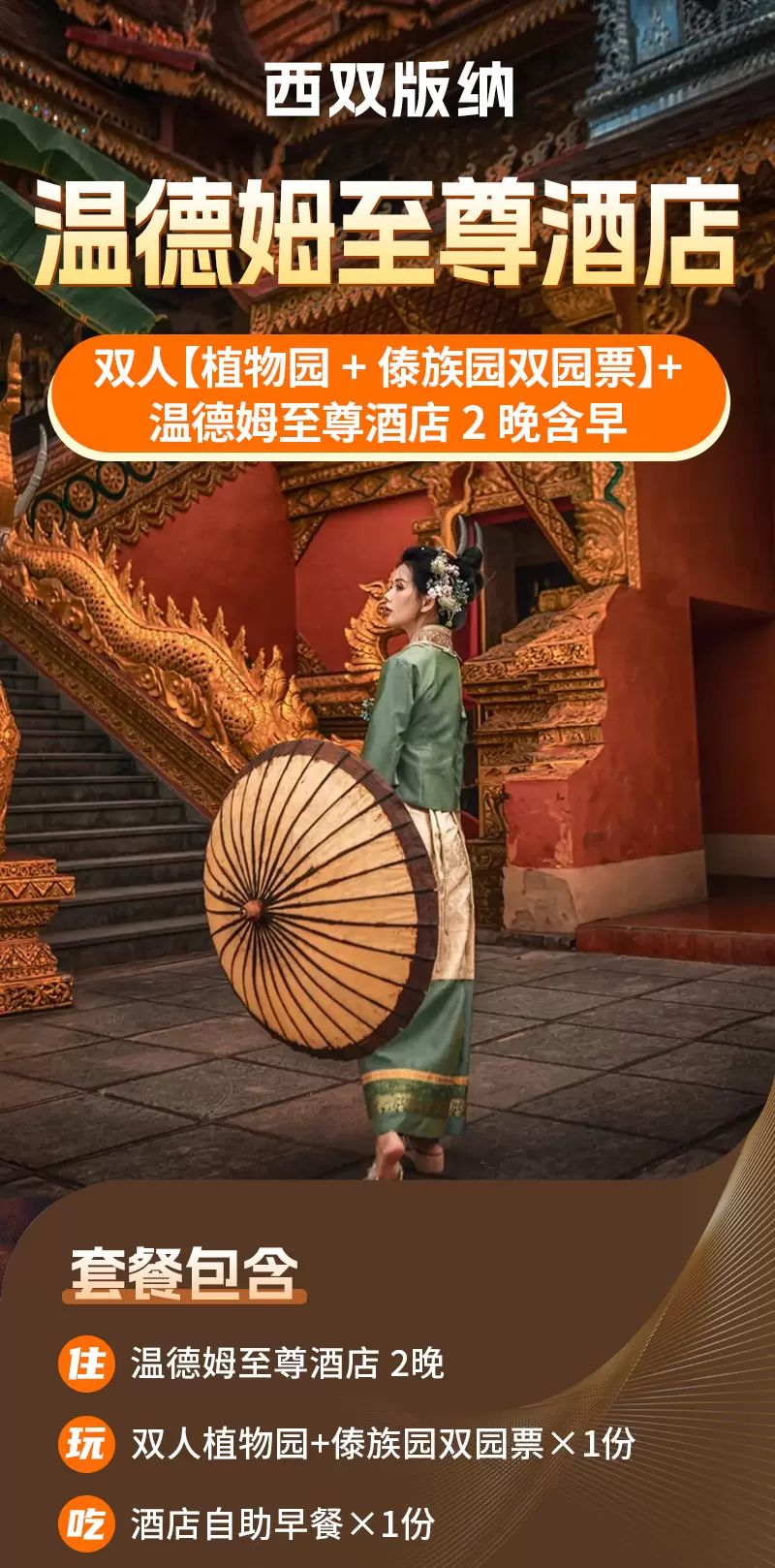 【酒店套餐】3天2晚版纳温德姆至尊酒店+双人植物园+傣族园双园门票+酒店早餐