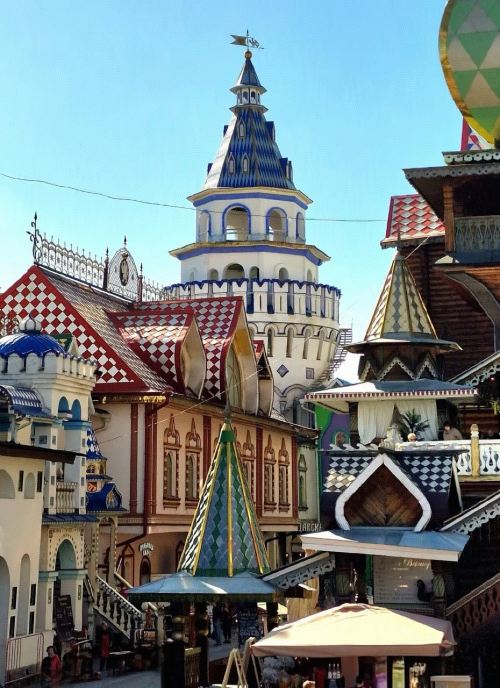 ▲ 伊兹麦洛沃克里姆林宫(Izmailovo Kremlin):2001年建成的17世纪俄式复古建筑群,彩色塔楼+木质结构,紧邻是热闹的跳蚤市场,尽显民俗风建筑与人文街景