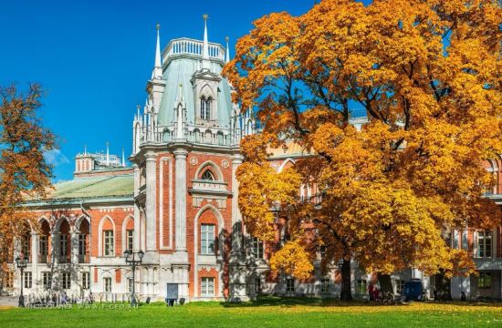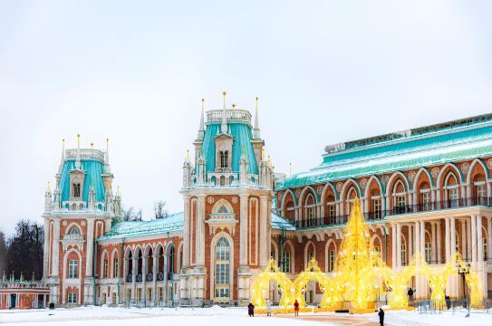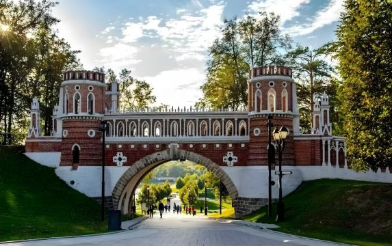 ▲ 察里津公园:18世纪皇家园林建筑群,巴洛克风格主楼搭配湖泊、林荫道,白墙蓝顶的建筑外观与自然景观相映成趣