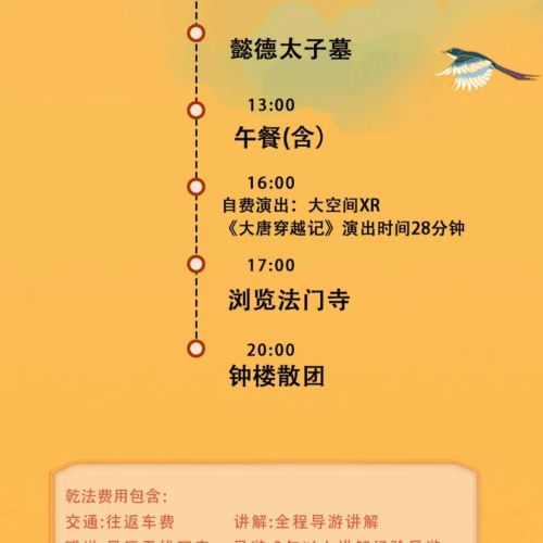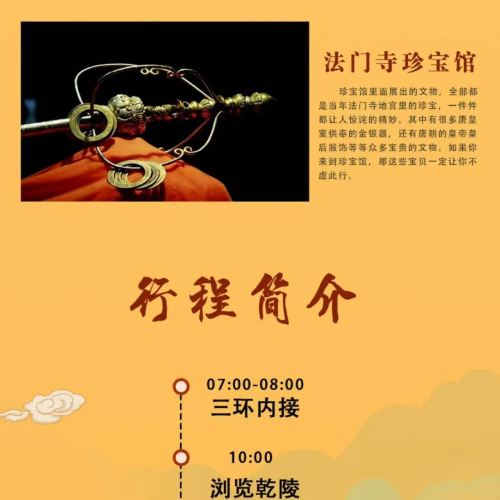 1、因线路升级,法门寺和乾陵参观顺序以当天导游安排为准,望悉知。