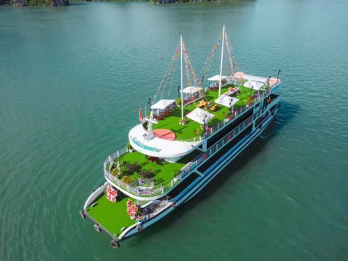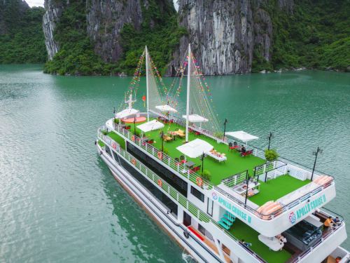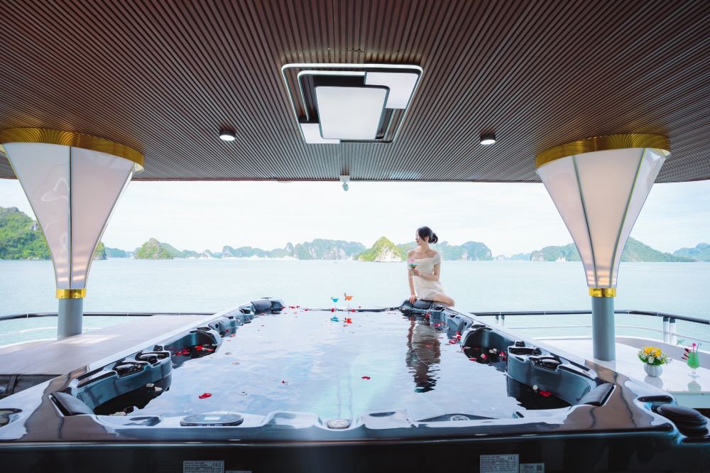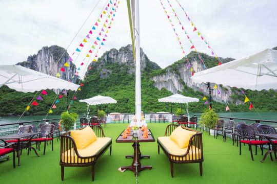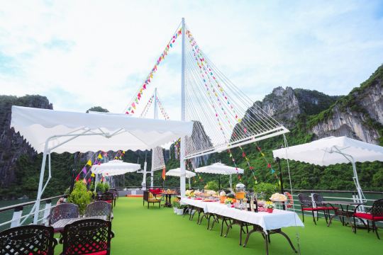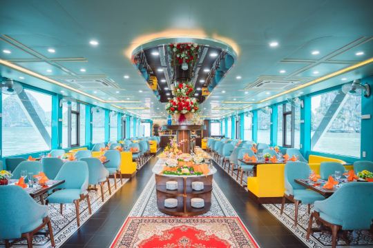 ▲ 优雅的用餐空间,透过宽大的窗户,可饱览下龙湾的壮丽景色。