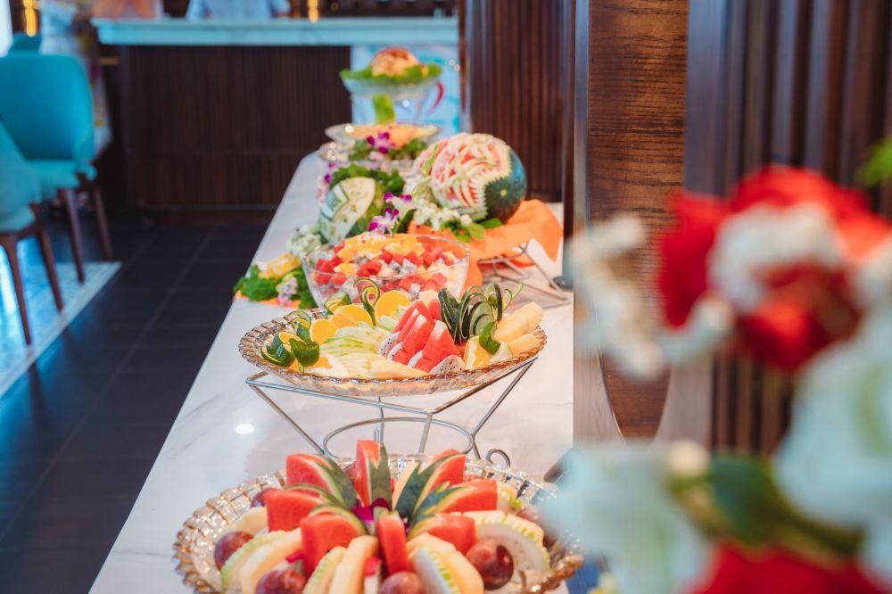 ▲ 船上供应各式甜点和下午茶,包括新鲜糕点、时令水果和清淡甜点——是日落巡航时享用的完美之选。