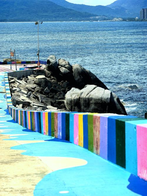▲ 爱情海岸 碧波荡漾的"玻璃海",白蓝相间的初见亭,面朝大海的秋千,日落时分,晚霞浸染天空,是拍摄浪漫写真的地点。