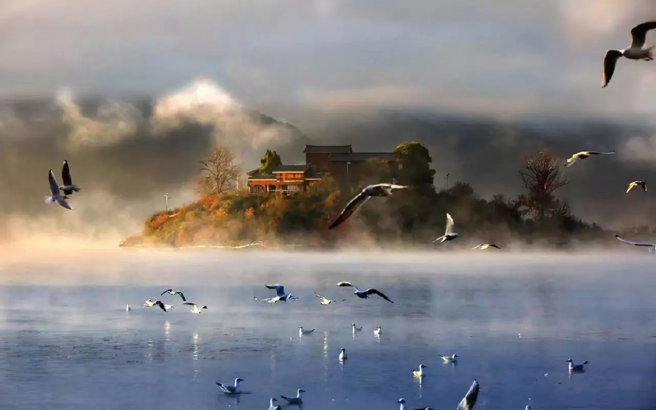 云南丽江泸沽湖官地花海码头游船【夏看水性杨花日落晚霞/冬看晨雾日出戏海鸥】