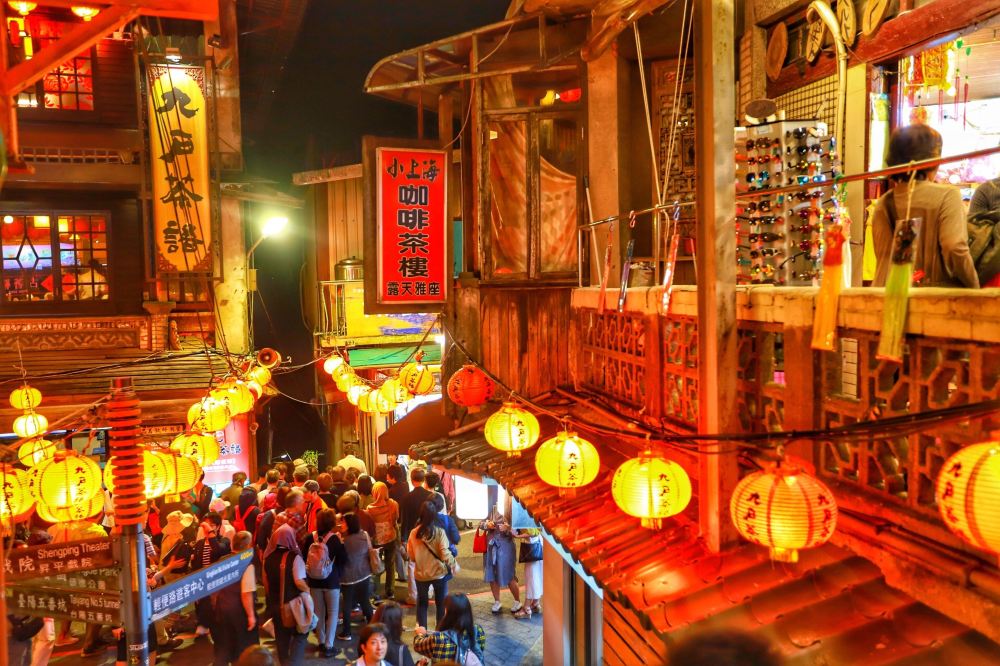 ▲ 九份老街是台灣著名的山城老街,以懷舊街道與茶樓聞名。沿街有各式在地小吃如芋圓、草仔粿、魚丸湯等,還有許多特色小店、紀念品店可以逛逛。街道依山而建,需走上坡階梯,適合喜歡體驗傳統台灣風情的旅客。