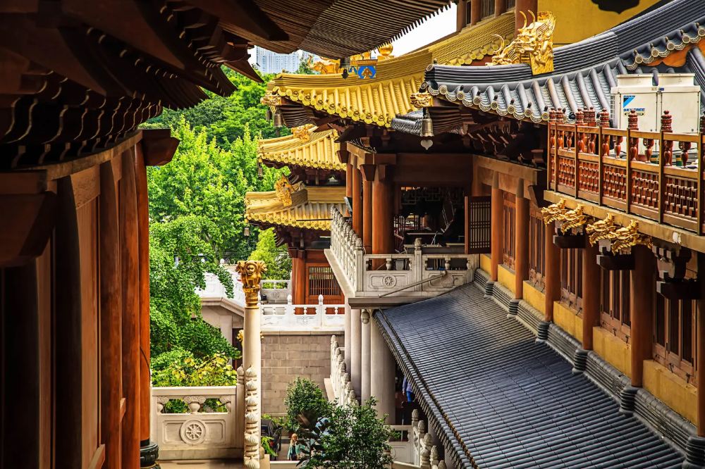 ▲ 静安寺地处上海市繁华的静安商区,交通便利。周围高楼林立,与清修的寺庙形成了鲜明的对比。寺院的建筑风格融合藏式寺庙,大雄宝殿中供奉的银佛重达15吨,牟尼殿玉佛比上海玉佛寺的玉佛还要大得多。