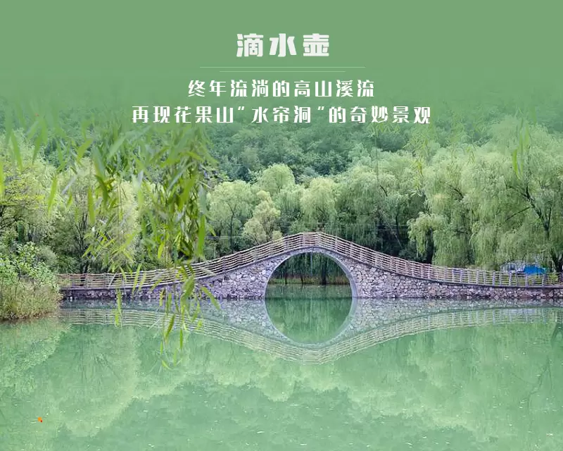 滴水壶景区位于北京市延庆区,气候属暖温带大陆性季风气候的半湿润区,空气负氧离子丰富,年平均气温8°C ,年均降水量477.2毫米,四季景色变幻如画,是名副其实的避暑胜地和绿色氧吧。