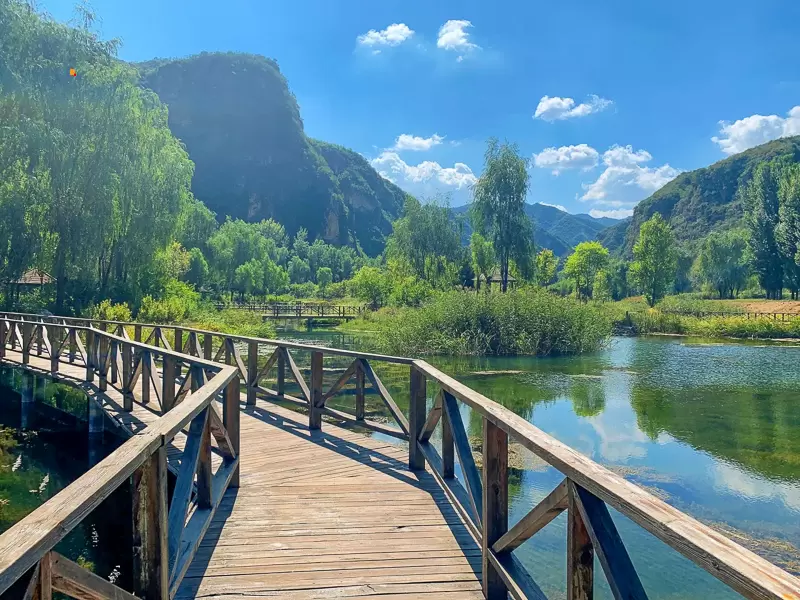 地处白河和黑河流域,山峦叠翠,碧水依山,拥有多样的地质景观。景区气候属暖温带大陆性季风气候的半湿润区,空气负氧离子丰富,年平均气温8°C ,年均降水量477毫米,四季景色变幻如画,是名副其实的避暑胜地和绿色氧吧。现有硅化木群、乌龙峡谷、滴水壶、朝阳寺、龙王庙、关帝庙等6大景区,秀水湾、长寿岭、古家窑、下湾等18个“山水人家”乡村旅游接待村。此外,小昆仑山、书剑峰、海相沉积遗迹、菜木沟旧石器遗址、文昌碑、大滩自然保护区、千亩向日葵海,以及万亩黄芩茶园,形成了众多地质科普和自然人文景观。