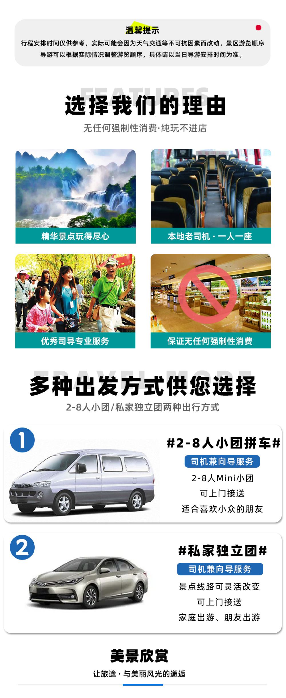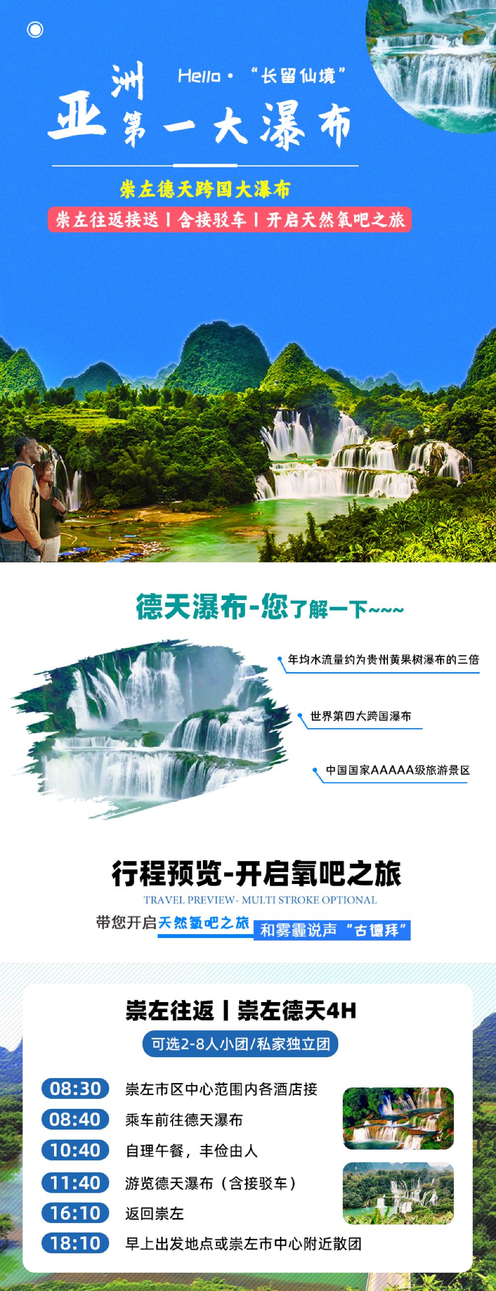 崇左德天跨国瀑布一日游【8人小团/私家团可选+全景畅玩4H】【【全景新体验】水陆空360°全景体验 ,领略德天中越边境异域特色风情◑近距离感受跨国瀑布的磅礴气势;】