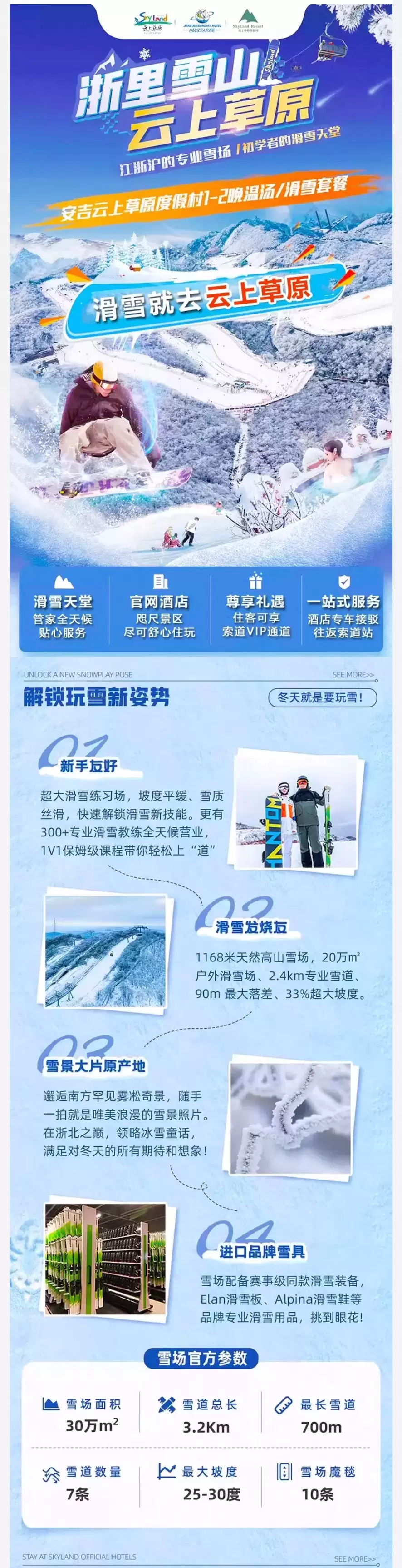 【官方酒店|2日2滑】滑雪★安吉云上草原度假村·云山境度假酒店/半山隐竹酒店1晚+云上草原/云上草原滑雪场