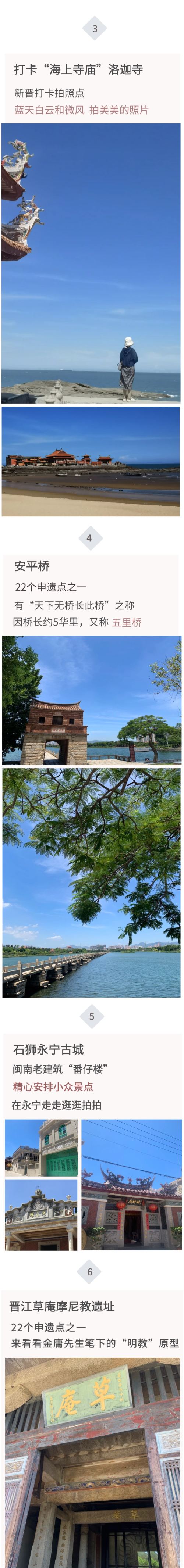 黄金海岸洛伽寺+五店市+安平桥草庵+永宁一日游(酒店上门接)【6人内精品vip团,人少安心更自在】